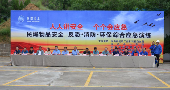 6月28日,同德化工“安全生产月”活动的“重头戏”——民爆物品安全反恐?消防?环保综合应急演练活动,在安全月活动领导组的精心组织安排下,如期举行。公司邀请市工信局、县发工科商局、县公安局、消防救援队、河曲生态环境分局、城建交通局等相关部门领导与参与单位,莅临现场观摩公司各项预案的实操性与契合度。