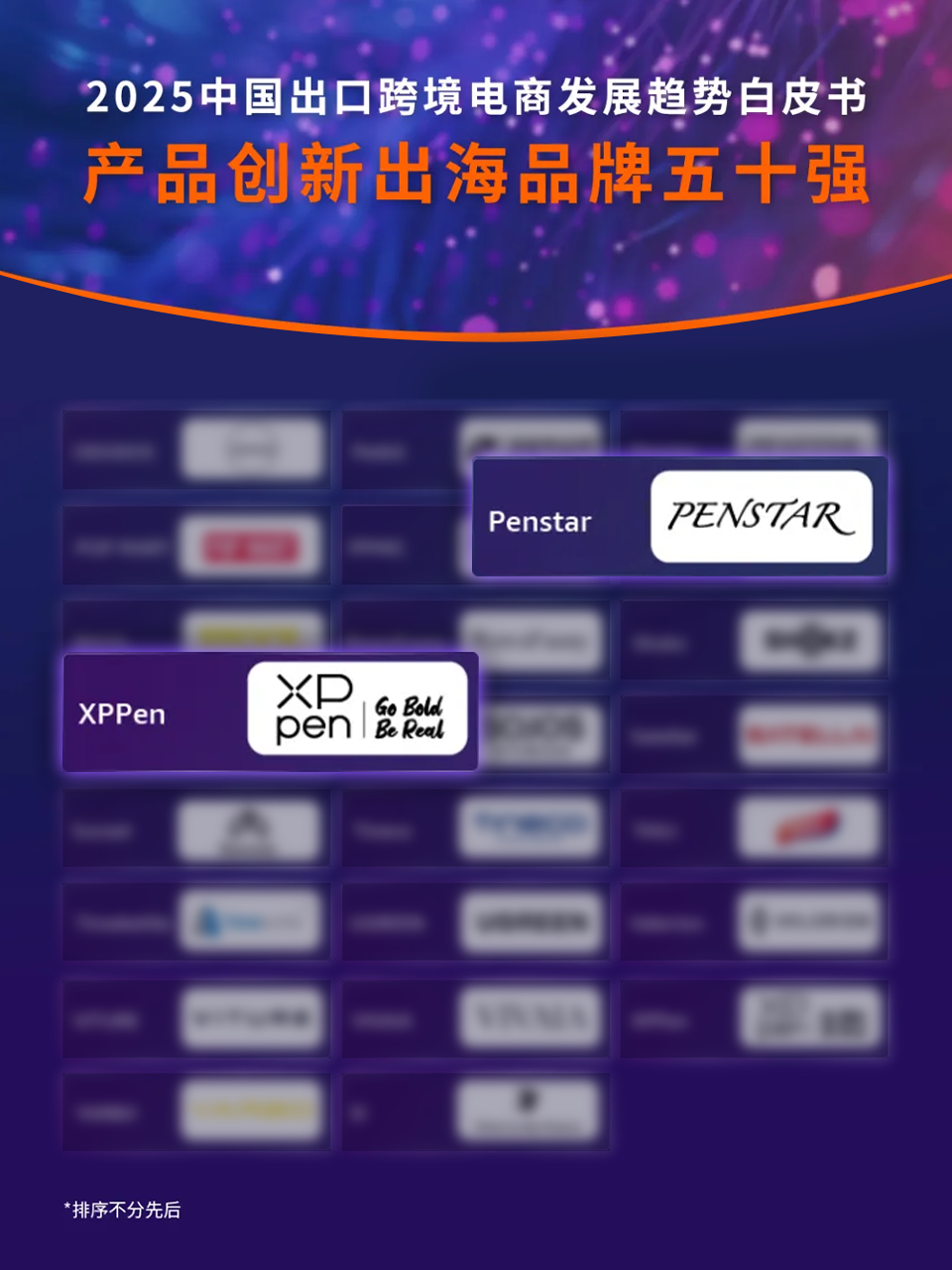 《2025中国出口跨境电商发展趋势白皮书》不仅洞察全球消费趋势,还通过“亚马逊全球开店产品创新出海品牌五十强”,表彰在技术创新、产品力与海外市场表现方面表现突出的中国品牌。该榜单的发布,既是对入选企业的高度认可,也为行业提供了参考方向,鼓励更多中国品牌以创新为驱动,走向全球市场。Penstar与XPPen两大品牌的入选,正是汉王科技多年来坚持自主创新与全球化战略的成果体现。
