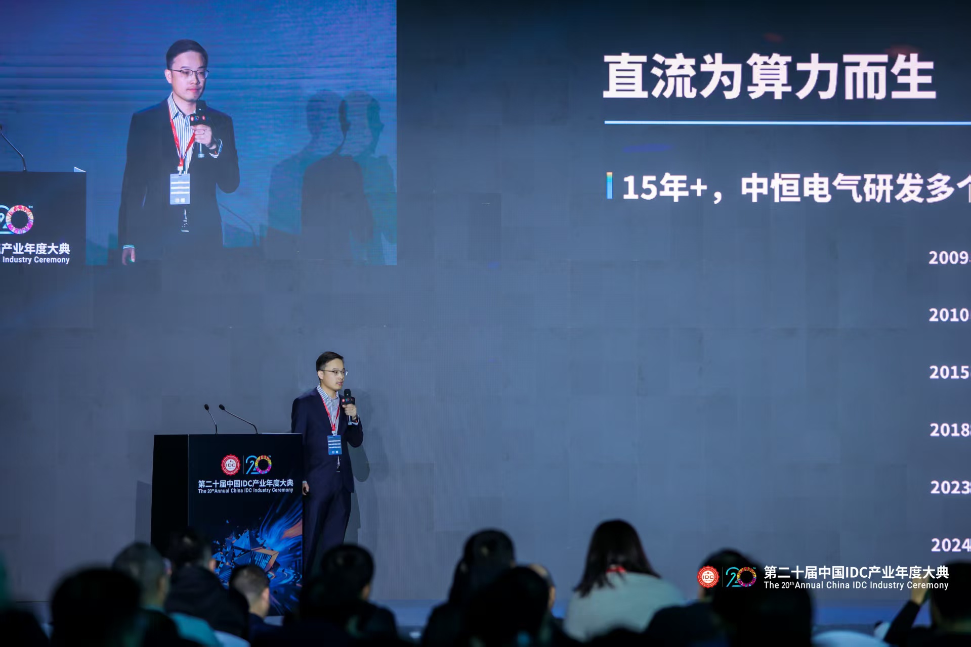 大会首日, 中恒电气 (002364.SZ)AIDC首席技术官沈烨烨于主论坛“潮起·破界·新生——算力视角重构”篇章中,就“以直流之‘美’,赋能全球AI数字生态”主题发表演讲,聚焦直流技术驱动绿色智能算力的革新。