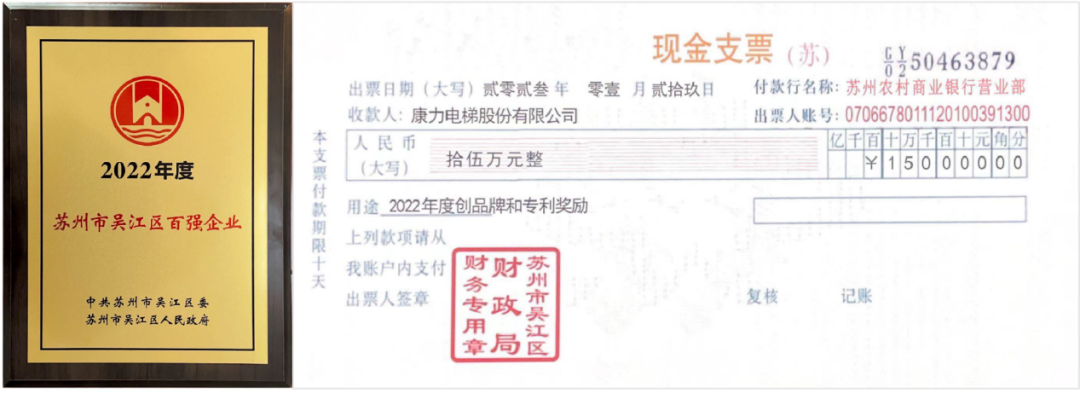 大会隆重表彰区内各行业先进代表,充分彰显褒扬先进、鼓励担当、激励争先的鲜明导向。作为高质量国产先行者,康力电梯荣获“2022年度吴江区百强企业”、“创品牌和专利奖励”两项大奖,公司副总裁朱琳懿上台领奖。
