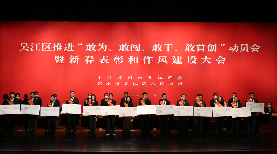 一年春作首,万事干为先。1月29日,吴江召开全区推进“敢为、敢闯、敢干、敢首创”动员会暨新春表彰和作风建设大会,表彰过去一年创新发展,成绩突出的优秀企业,对2023年全局性重点工作再动员再部署,动员全区以“四敢”精神和“开局就是决战、起跑就是冲刺”的状态迈进新征程、奋进新时代,更好地“扛起新使命、谱写新篇章”,奋力推进中国式现代化吴江新实践。