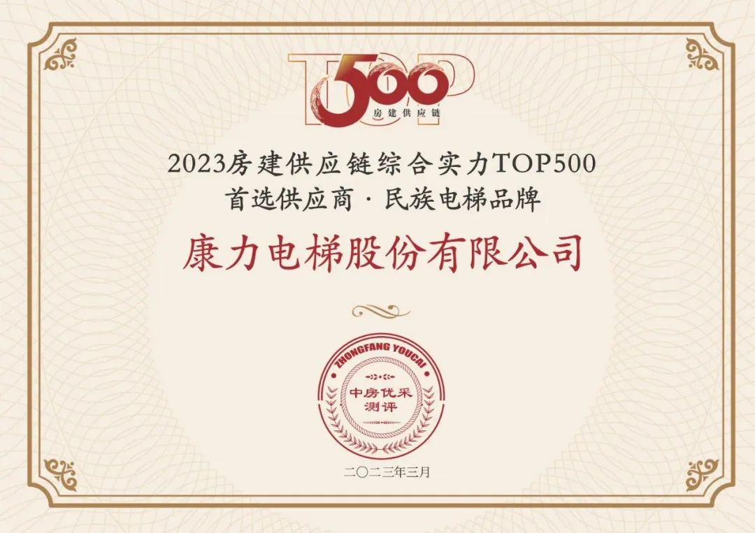 3月23日,中房优采测评正式发布《2023房建供应链综合实力TOP500-首选供应商服务商品牌测评研究报告》,康力电梯以12%的品牌首选指数,连续第11年跻身房建供应链综合实力TOP500首选供应商·电梯类10强,2023年高居前4。