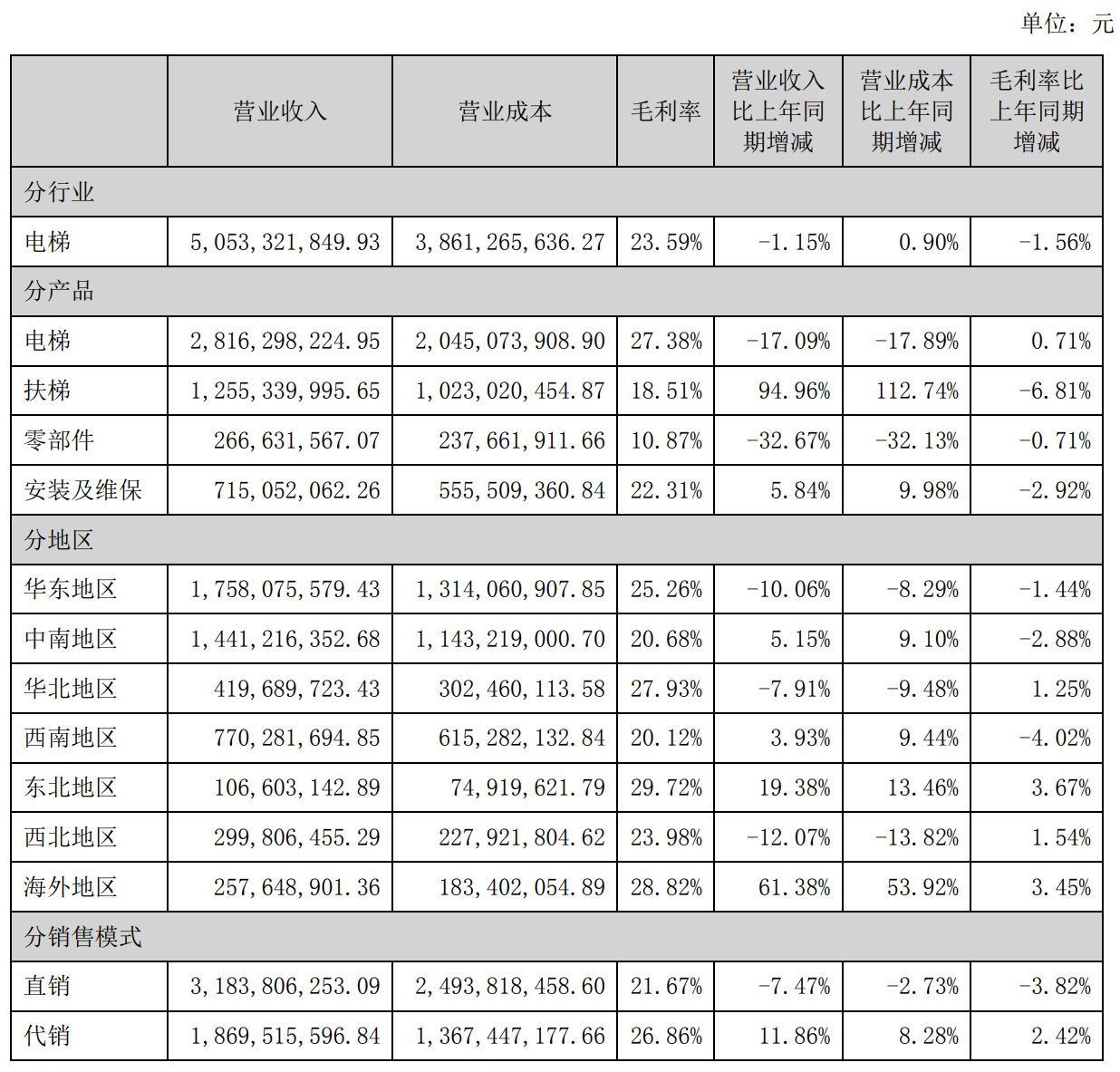 分产品来看,2022年,电梯的营业收入为28.16亿元,同比下降17.09%。