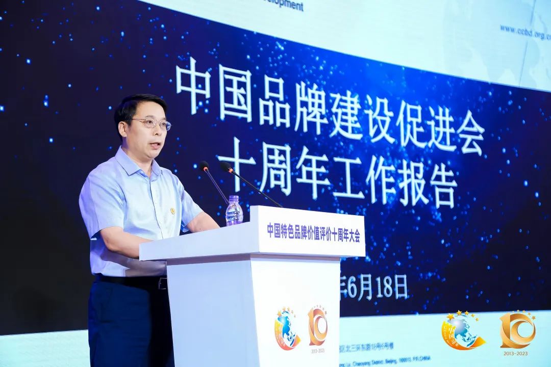2023年6月18日,由中国品牌建设促进会主办、《中国品牌》杂志社、中国国家品牌网承办的中国特色品牌价值评价十周年大会暨首届品牌领跑者论坛在北京隆重召开。十二届全国政协副主席陈元,中国品牌建设联席会执行主席、原国家质检总局局长支树平,中国品牌建设促进会理事长、国际标准化组织品牌评价技术委员会(ISO/TC 289)顾问组主席、原国家质检总局副局长刘平均,第十三届全国政协经济委员会副主任、原工业和信息化部副部长苏波,中国品牌建设促进会副理事长兼秘书长郑志受等十余位省部级领导出席会议,ISO/TC289主席大卫·海格通过视频致贺辞,有关地方政府、品牌机构、知名企业、高等院校、品牌专家等近400人共聚一堂,见证中国品牌建设十年所取得的成就。