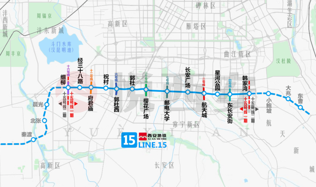 西安地铁15号线一期工程线路西起细柳站,东至韩家湾站,横贯西安主城区南部,串联起高新区、长安区、航天城3大区域,将极大缩短长安大学城与相邻产业园及城区的空间距离,对促进西安南部的科教、产业、文旅协同发展具有重要意义。