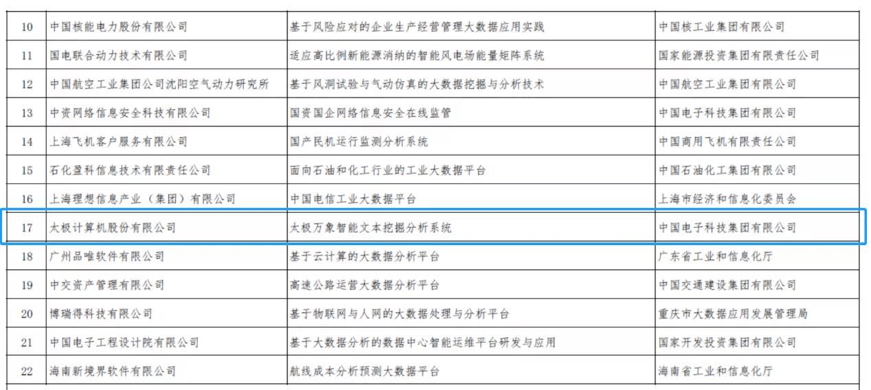 2021年示范项目名单分为工业大数据应用、行业大数据应用、大数据重点产品、数据管理及服务四个方向,太极万象智能文本挖掘分析系统以出色的大数据分析挖掘能力,被选为大数据重点产品。