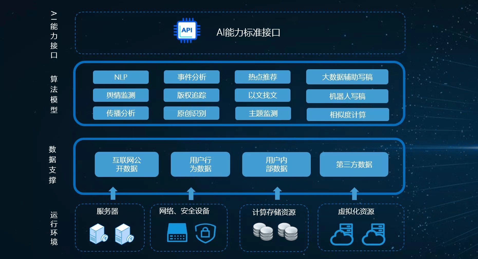 NLP全链条覆盖。太极万象智能文本挖掘分析系统融合太极多年来积累的中文信息处理技术和最新研究成果,将中文自然语言处理(NLP)技术覆盖到文本分析的全生产链条,为用户提供词性标注、命名实体识别、文本分类、情感分析、实体识别、摘要提取等文本分析能力,支撑融媒体生产中主题检测、热点话题推荐、大数据辅助写稿、版权追踪、舆情监测等技术应用。