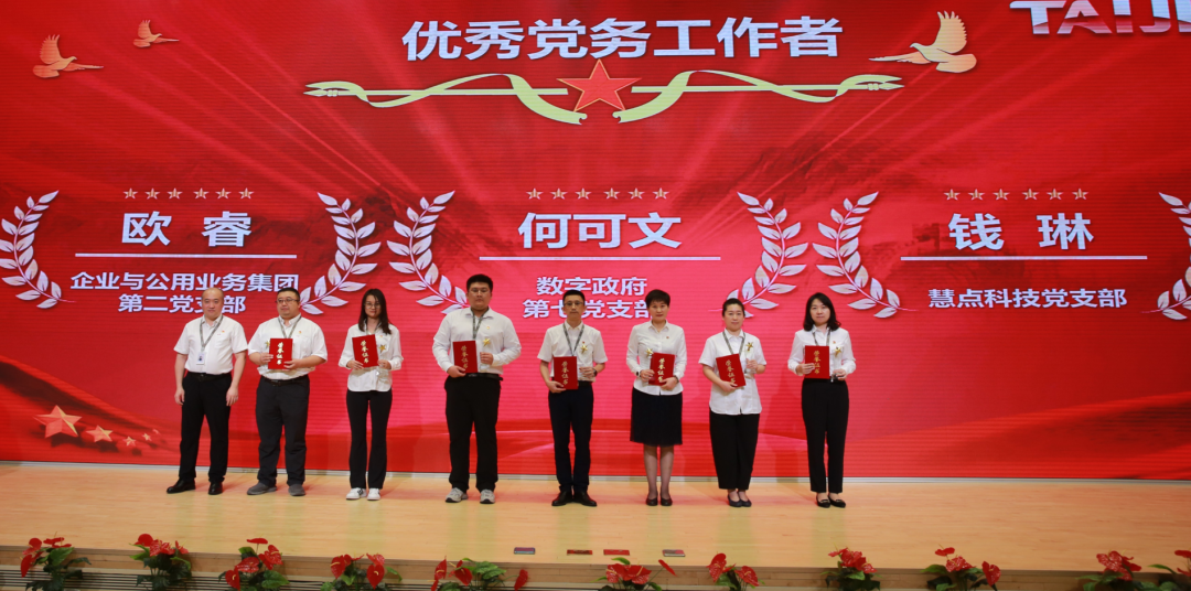 7月4日,太极股份召开庆祝中国共产党成立103周年暨“七一”评优表彰大会,隆重表彰一年来在推动公司高质量发展中涌现出来的杰出党员和团队代表。电科太极董事长、党委书记、15所党委书记、太极股份董事长、党委书记吕翊,太极股份党委副书记、总裁仲恺,纪委书记、高级副总裁陈轮出席会议,在场领导为各位获奖个人及团队代表颁奖,获奖代表积极分享了经验做法。