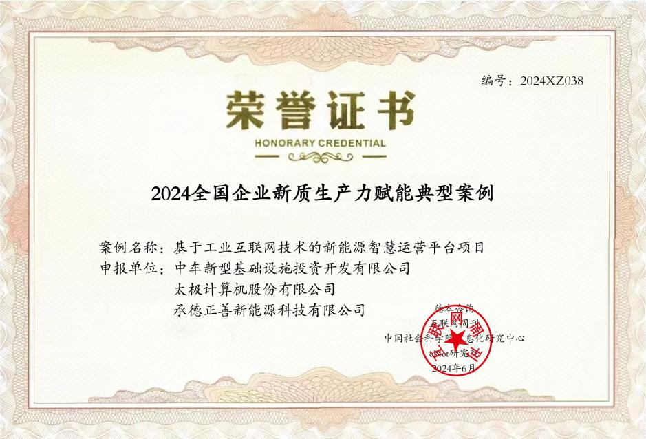 此次《2024全国企业新质生产力赋能典型案例》的评选,主要聚焦重点行业和重点产业链,遴选出一批创新能力强、引领作用大、社会效益好的典型案例。凭借在能源领域的行业优势和技术研发实力,太极股份基于工业互联网技术的新能源智慧运营平台从1000家企业中脱颖而出,成功入选典型案例。