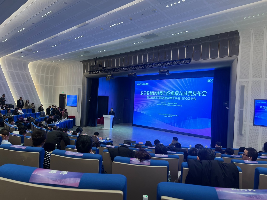 2024年12月26日,中国信息通信研究院(以下简称“中国信通院”)在京召开2024政企数智化转型与企业级AI成果发布会暨企业数字化发展共建共享平台(EDCC年会)。