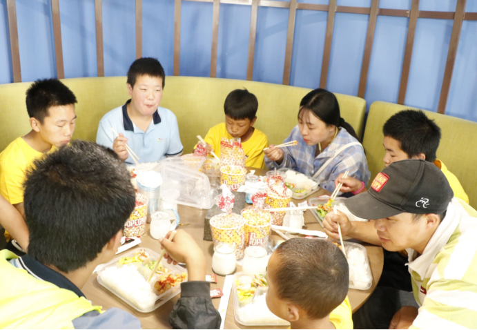 中午,孩子们在园区的海洋餐厅品尝了特别为他们定制的儿童营养餐。职工与孩子们围坐在一起,共话家常,观看影片,其乐融融。这一刻,餐厅里充满了欢声笑语,温暖的氛围让孩子们感受到了家的温暖。