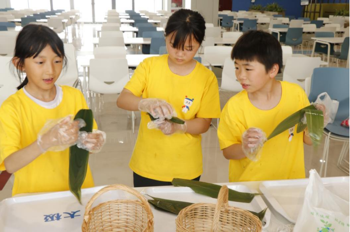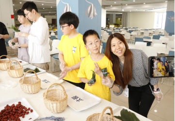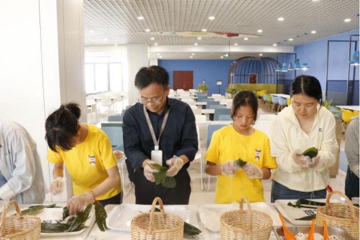 在海洋餐厅内,职工和孩子们围坐在一起,搭档包粽子。从折叶、填米到系绳,职工手把手指导孩子们制作粽子。孩子们在职工的陪伴下,不仅学会了包粽子的技巧,更感受到了传统文化的魅力。职工们化身“临时家长”,陪伴孩子们参与游戏环节,赢得了丰富的小礼物,提前过了一个开心的“六一儿童节”。