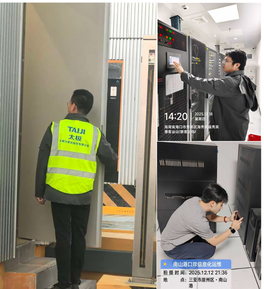 为确保封关运作万无一失,太极股份将保障工作前置,项目团队提前进驻各口岸,全力配合开展多轮实战演练与 7×24 小时热运行保障,不论白天还是黑夜,口岸现场、机房总能看到太极人的身影。