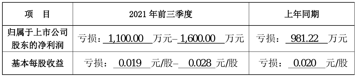 挖贝网10月14日,卓翼科技(002369)近日发布2021年前三季度业绩预告公告,预计2021年前三季度实现归属于上市公司股东的净利润为亏损1100.00万元–1600.00万元,比上年同期亏损增加12.11%–63.06%。