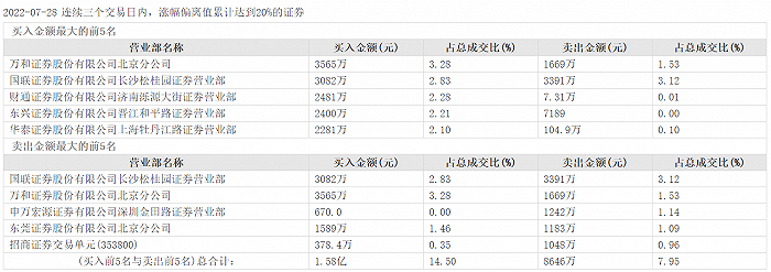 卓翼科技公司在7月26日-7月28日连续三日登上龙虎榜。7月28日,万和证券北京分公司、国联证券长沙松桂园证券营业部、东莞证券北京分公司走出“一日游”风格,大笔买入并大笔卖出。