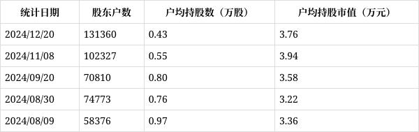 从12月26日公开信息显示,卓翼科技截至2024年12月20日公司股东户数为13.14万户,较上期(2024年11月8日)增加4.33万户,增幅为49.20%,持股趋于分散。