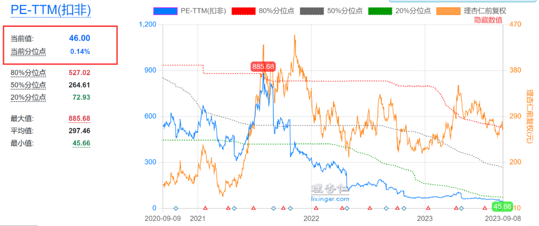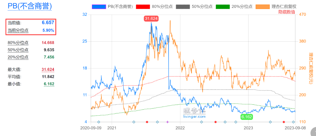 PB值近3年的5.90%分位点,近5年的12.28%分位点;而其PE近3年0.14%分位点,近5年0.08%分位点,处于历史绝对的低估状态。