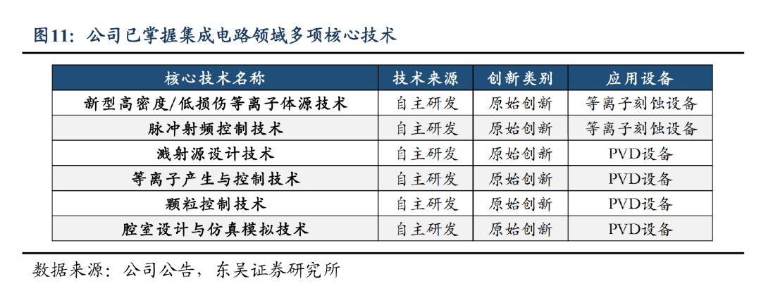 公司在光伏、LED、MEMS、功率器件等工艺设备及真空设备领域均处于国际先进水平,等离子刻蚀设备已突破新型高密度/低损伤等离子体源技术和脉冲射频控制技术;