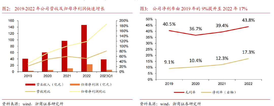 利润端也随之实现高速增长,2019-2022年公司归母净利润复合增长率 97%,2022年归母净利润23.5亿,同比增长118%。