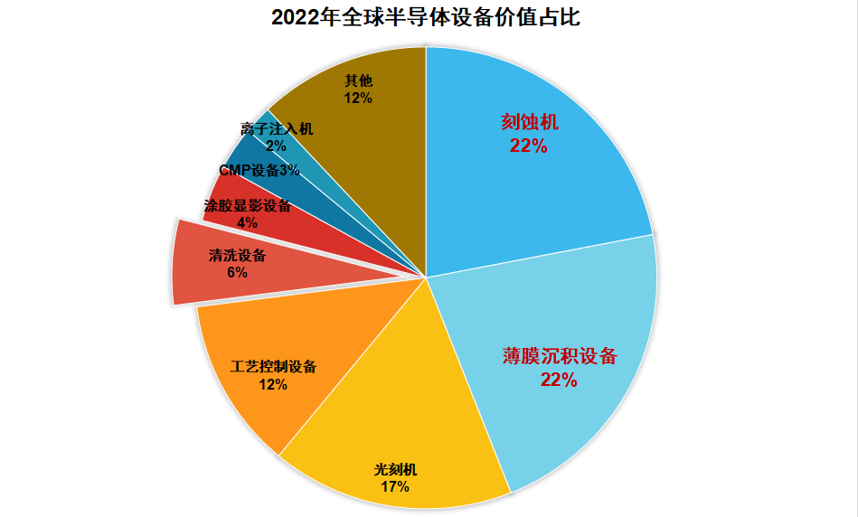 在众多半导体设备中价值量占比最高的不是大名鼎鼎的光刻机,而是刻蚀机和薄膜沉积设备,占比高达22%,但半导体设备市场之前基本是国外厂商的天下。