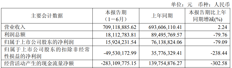 芯源微(688037.SH)近日披露2025年半年度报告,上半年公司实现营业收入7.09亿元,同比增长2.24%;归属于上市公司股东的净利润1592.42万元,同比下降79.09%;归属于上市公司股东的扣非净利润-4953.02万元,上年同期为3577.63万元;经营活动产生的现金流量净额为-2.83亿元,上年同期为1.40亿元。