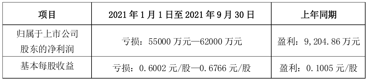 挖贝网10月14日,国创高新(002377)近日发布2021年前三季度业绩预告公告,预计2021年前三季度实现归属于上市公司股东的净利润为亏损55000万元–62000万元,同比由盈转亏。