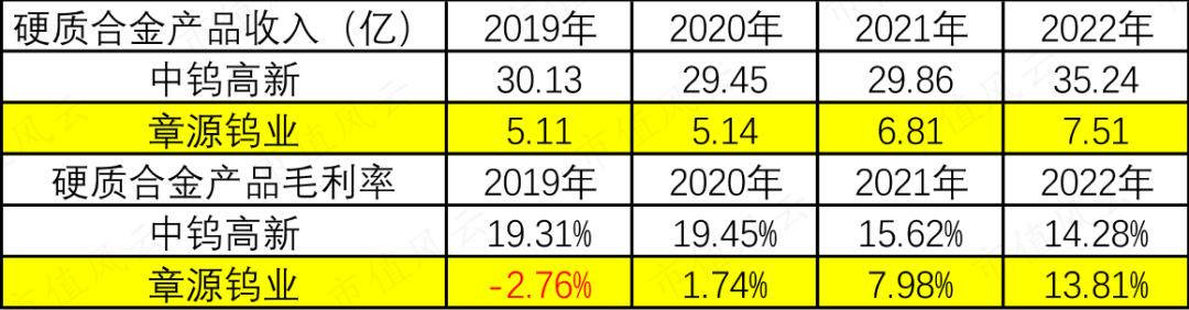 (硬质合金产品收入和毛利率对比,市值风云)