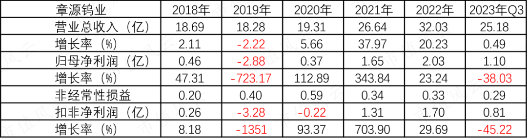 (章源钨业2023年三季报业绩)