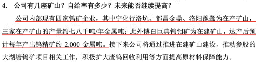 无论是厦门钨业、中钨高新、还是章源钨业,每年都需要外购大量的钨矿,自给率远远不足:厦门钨业的钨矿山自给率达36.60%,章源钨业原材料自给率约25%,而中钨高新自给率极低,几乎没有……