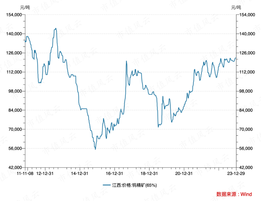 (2011年以来钨精矿价格价格走势,wind数据)