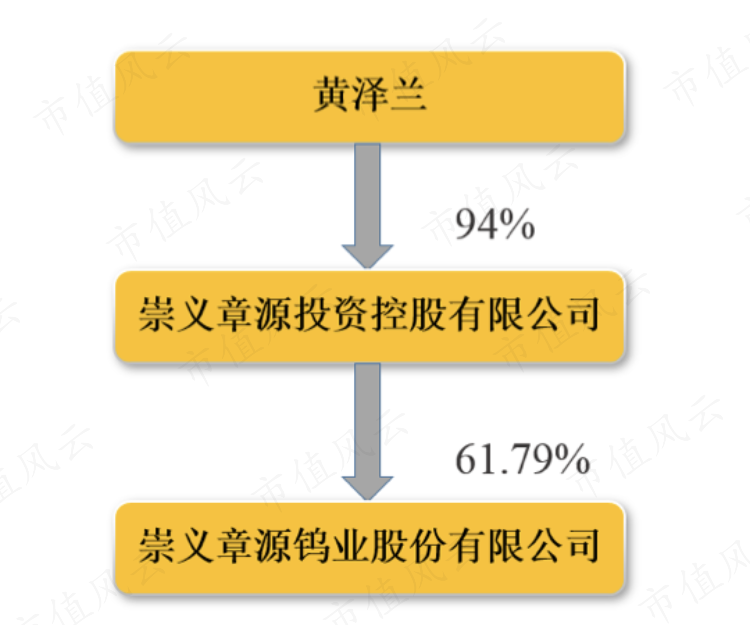 章源钨业控股股东是崇义章源投资控股有限公司(简称“章源投资”),持有61.79%的股权。