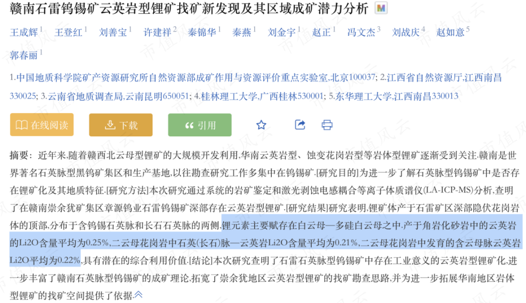 (赣南石雷钨锡矿云英岩型锂矿找矿新发现及其区域成矿潜力分析,万方数据)