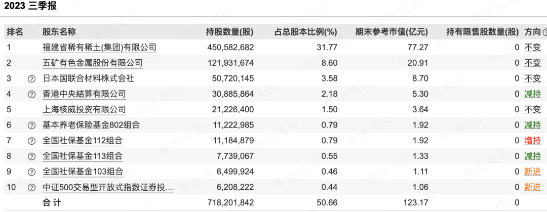 (章源钨业2023年3季度前十大股东)