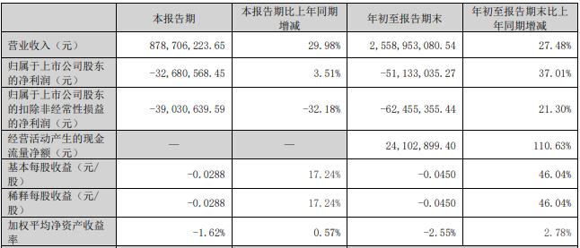 宏创控股三季报显示,2024年前三季度,宏创控股归属于上市公司股东的净利润为-5113.30万元,归属于上市公司股东的扣除非经常性损益的净利润为-6245.54万元。