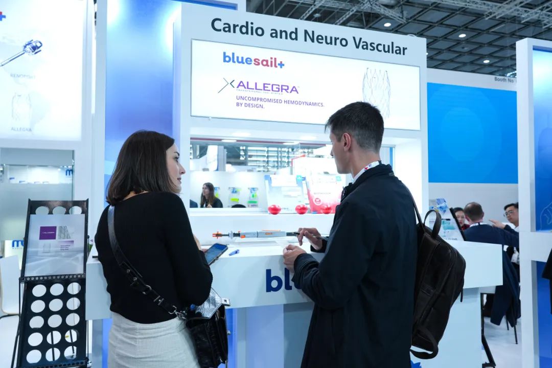 在心脑血管展区,蓝帆医疗展出了包括BioFreedom?Ultra无聚合物药物涂层支架、Allegra?经导管介入主动脉瓣膜输送系统等在内的多款领先产品。这些产品不仅代表了蓝帆医疗在心脑血管领域的深厚技术积累,也体现了公司对创新的不懈追求。BioFreedom? Ultra 获得欧盟 CE、日本认证后,目前已经在全球60个国家和地区实现上市,上一代产品BioFreedom?更是全球首个被写入欧洲心血管治疗指南中专门针对高出血风险患者的推荐支架。