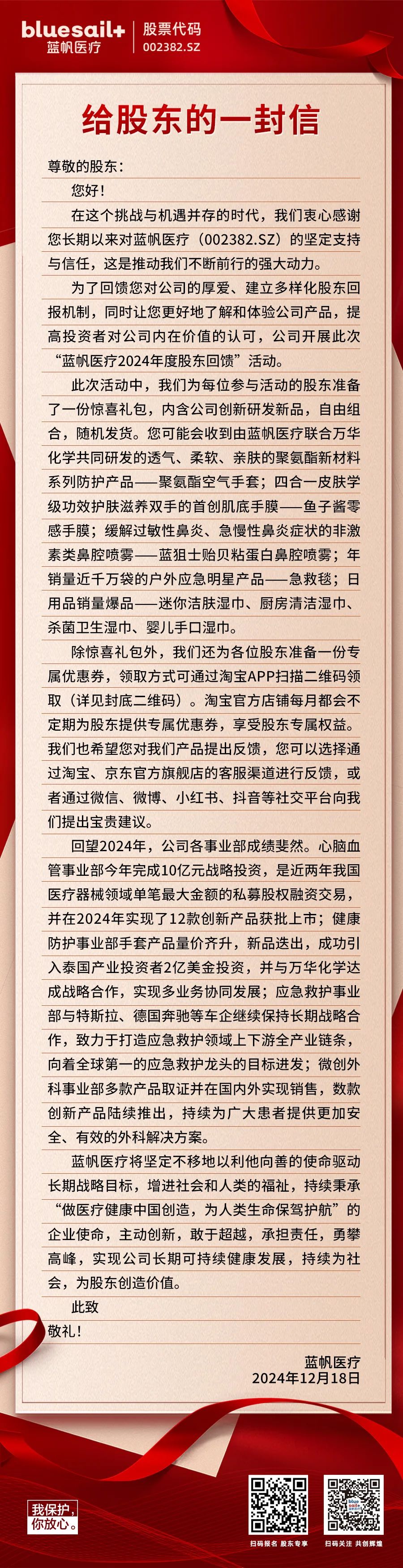 感恩相伴14载!蓝帆医疗股东回馈活动今日开启