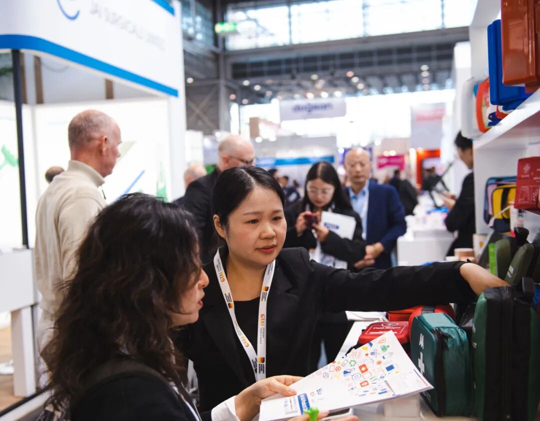 满足德国DIN、英国BS、美国ANSI等多个国际标准的急救包产品在应急救护展区整齐陈列。公司依托旗下子公司必凯尔,创新推出多种定制化服务,可根据客户需求及各国法规量身打造急救产品,覆盖家用、车载、商用等多场景。目前,公司急救包系列产品已获得欧洲、美国、英国、澳大利亚及中国等主要经济体的全资质认证,并拥有大量长期蓝筹客户,年产能达2,000万套,位居世界前列。