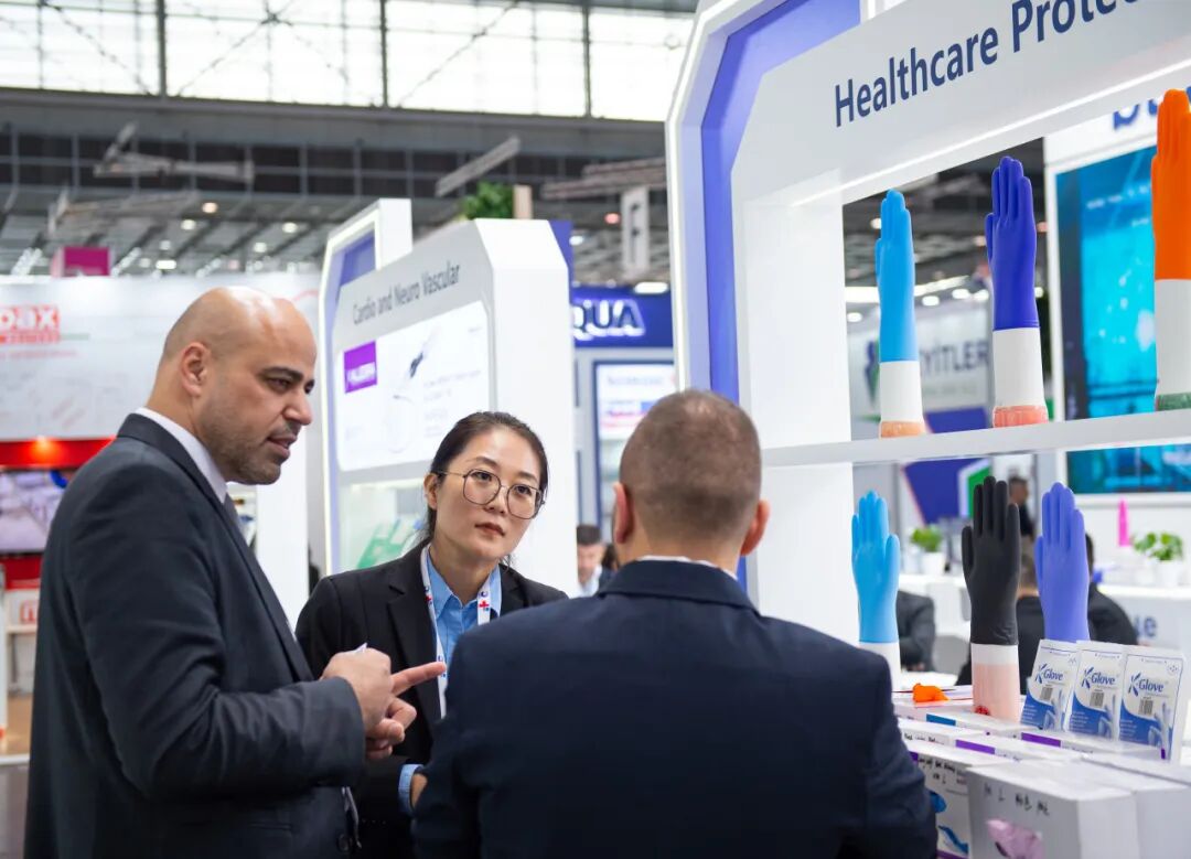 公司还在健康防护展区展示了品类齐全的医疗防护产品,包括丁腈手套、PVC手套、聚氨酯手套等。其中聚氨酯手套是蓝帆医疗最新的创新产品,历经8年研发,突破了传统材质的局限,在透气性、耐穿刺性、弹性、抗敏性等方面实现质的飞跃。其无毒、无污染、安全可靠的特性,更契合欧洲市场的绿色与ESG理念。相信这款产品的推出将进一步增强公司健康防护事业部的全球竞争力。