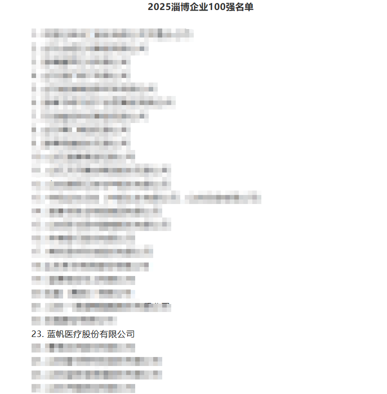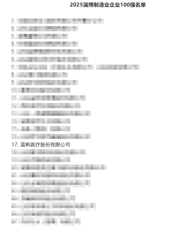 近日, 淄博市工业和信息化局 、市发展改革委、市企业联合会联合发布了“2025淄博企业100强”和“2025淄博制造业企业100强”榜单。 蓝帆医疗 凭借领先的营收体量、卓越的创新实力、深厚的制造底蕴,成功跻身两大榜单,展示了公司在淄博经济发展和转型升级中,正以实际行动贡献自己的力量。