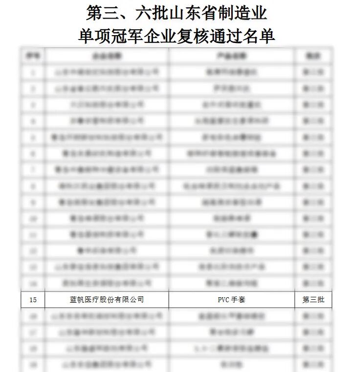此次吉威医疗入选并非蓝帆医疗首次斩获该项荣誉。此前,蓝帆医疗已凭借PVC手套产品通过第三批山东省制造业单项冠军企业复核。此次再添殊荣,标志着蓝帆医疗在低值耗材与高值耗材两大核心业务板块均跻身省级制造业单项冠军行列,产业布局卓有成效。