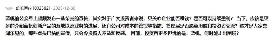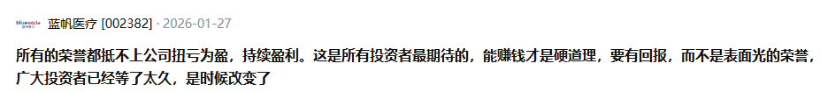 在投资者平台,有不少投资者关心“何时能扭亏为盈、持续盈利”,亦有投资者吐槽“能赚钱才是硬道理,而不是表面的荣誉”,甚至有投资者提出“公司是否计划重新选举或聘任优秀的管理团队?”