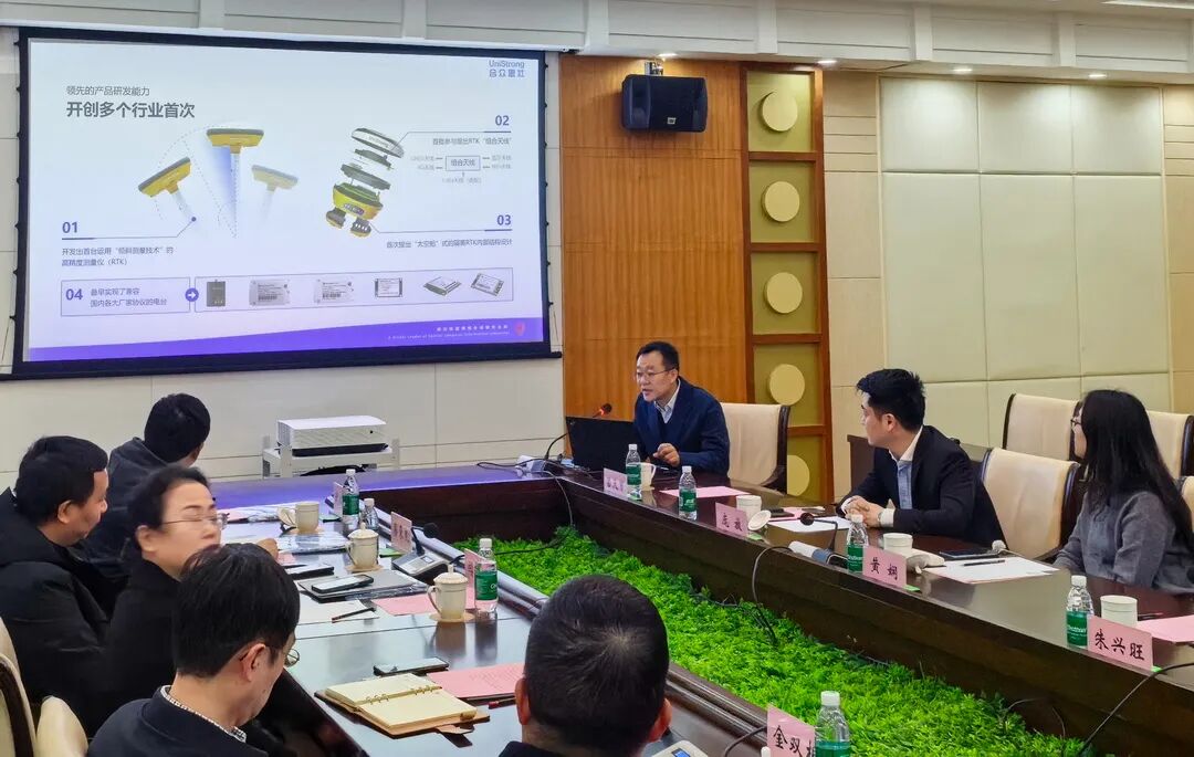 签约仪式后, 合众思壮 研发管理部总监张博作了题为《扩展与融合——定位技术与产品发展趋势探讨》的专题报告,系统介绍了 合众思壮 的产业积淀,并重点分享了公司对行业前沿的洞察。随后,双方围绕后续合作的具体内容与推进机制等进行了深入交流座谈。