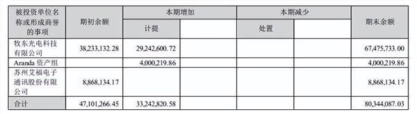 年报显示,东山精密2023年计提商誉减值准备3324.28万元,共来自2家公司。其中牧东光电占据了大头,2023年新增计提2924.26万元,合计计提商誉减值准备增至6747.57万元;Aranda资产组在收购首年就计提商誉减值准备400.02万元。目前,东山精密商誉账面价值为22.09亿元,赶超去年净利润水平。
