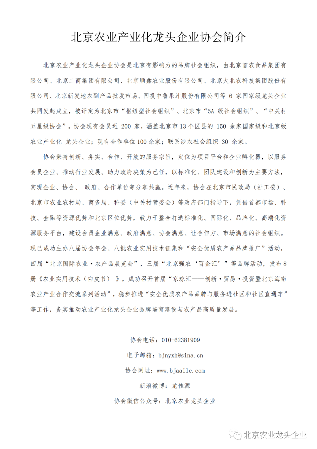 为发挥北京农业中关村在北京农业产业化龙头企业发展中的作用,有利于中小农业企业的孵化和农业科技成果转化,推动北京农业产业化龙头企业协会、北京京瓦农业科技创新中心和北京大北农科技集团股份有限公司三方之间的合作,形成三方合作共赢的格局,探讨三方合作模式,推动生物产业领域技术的对接和转化,2022年5月13日,由北京农业产业化龙头企业协会牵头组织,举行了三方合作项目线上对接交流会。