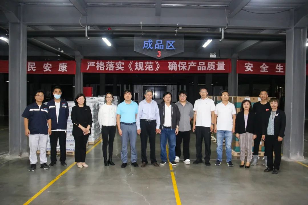技术研发总监唐飞、生产部经理李广及化验室李欣陪同专家团参观成品库、产品检验化验室、产品留样室并进行交流探讨。
