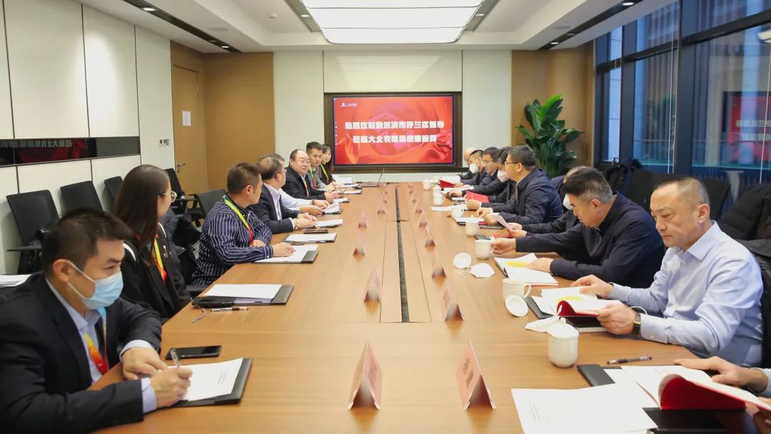1月10日下午,哈尔滨市呼兰区区委书记曹德友,区人大常委会主任刘宜俭,区政协主席卢刚,区委常委、区政府副区长李宏伟,区政府副区长贾玉国等一行领导莅临大北农视察指导,大北农投资集团总裁陈中恒、大北农国际集团高级副总裁林孙雄、大北农集团投资建设平台总裁于学敏等热情接待并陪同参观座谈。