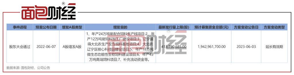 2023年6月3日,大北农发布公告显示,决议公司2022年度定增预案的有效期自2022年6月22日股东大会审议通过之日起12个月。