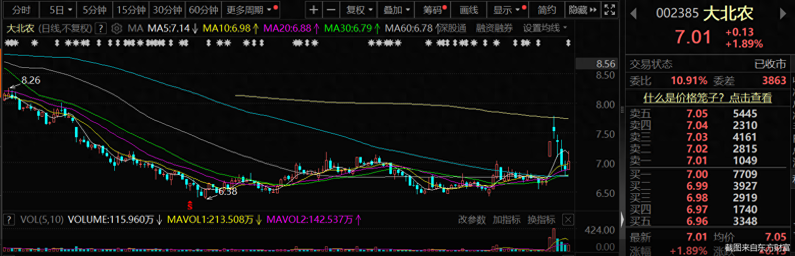 据了解,大北农产业布局涵盖饲料科技、养猪科技、作物科技、疫苗动保科技等多个领域,截至10月25日收盘,公司股价报7.01元/股,总市值为290.1亿元。