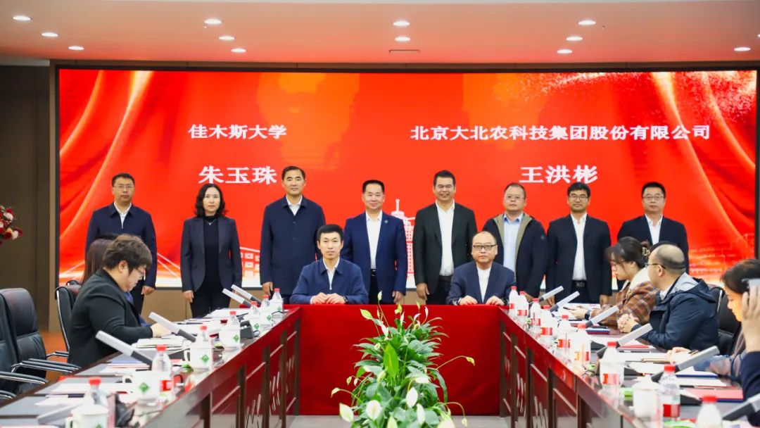 为全面推进校企合作战略,助力农业科教事业,贯彻农业强国和科技强国战略,10月24日下午,佳木斯大学与大北农集团共同举行校企战略合作签约仪式。佳木斯市政府副市长王继武、建三江管委会主任李庆飚,市农业农村局副局长李季明、佳木斯大学校长武瑞、校党委副书记朱玉珠,大北农集团董事局主席邵根伙博士、大北农黑龙江投资集团总裁陈忠恒、农民日报社秘书长焦宏、中国农科院农产品加工研究所副所长范蓓等参加仪式。佳木斯大学校党委常委、副校长张凤斌主持仪式。