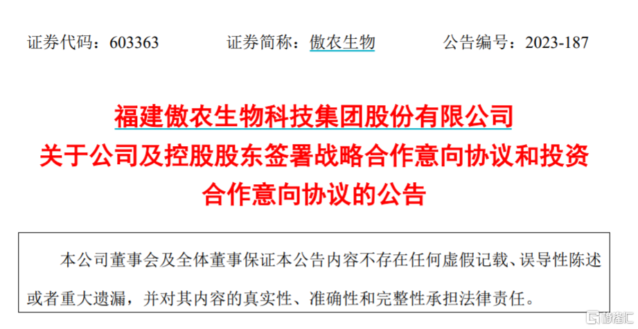 12月12日晚间,傲农生物与大北农两家上市公司同时公告,双方签署了《战略合作意向协议》。同时,大北农还与傲农生物的控股股东傲农投资签署了《投资合作意向协议》。